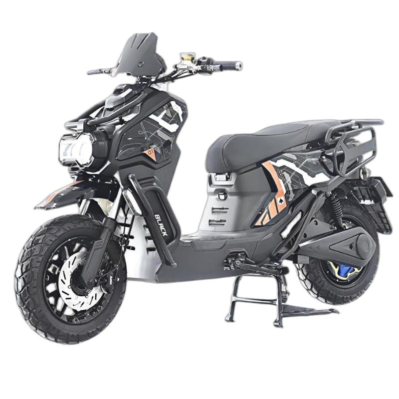 The BODO-ZM01 Electric Off-road Motorcycle is a high-performance off-road e-bike built for rugged terrain and thrilling rides. Measuring 1945×830×1170mm, it features a compact yet sturdy frame paired with 120/70-12 front and rear tires for excellent grip and stability. Equipped with front and rear disc brakes with ABS linked braking, it delivers reliable stopping power in all conditions. Powered by a 3000W rated motor, it reaches a top speed of 100km/h, while the 72V 50Ah lithium battery provides strong, long-lasting energy for extended off-road adventures. This electric off-road motorcycle combines power, safety, and durability, making it ideal for off-road enthusiasts seeking an eco-friendly, high-performance ride.